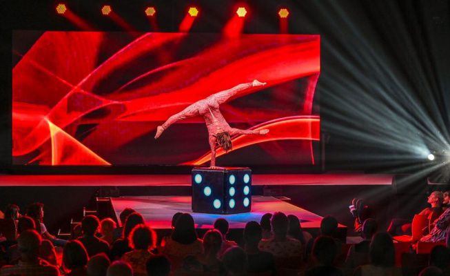 This mesmerising act highlights the beauty of minimalistic props and can be adapted to suit stages of any size