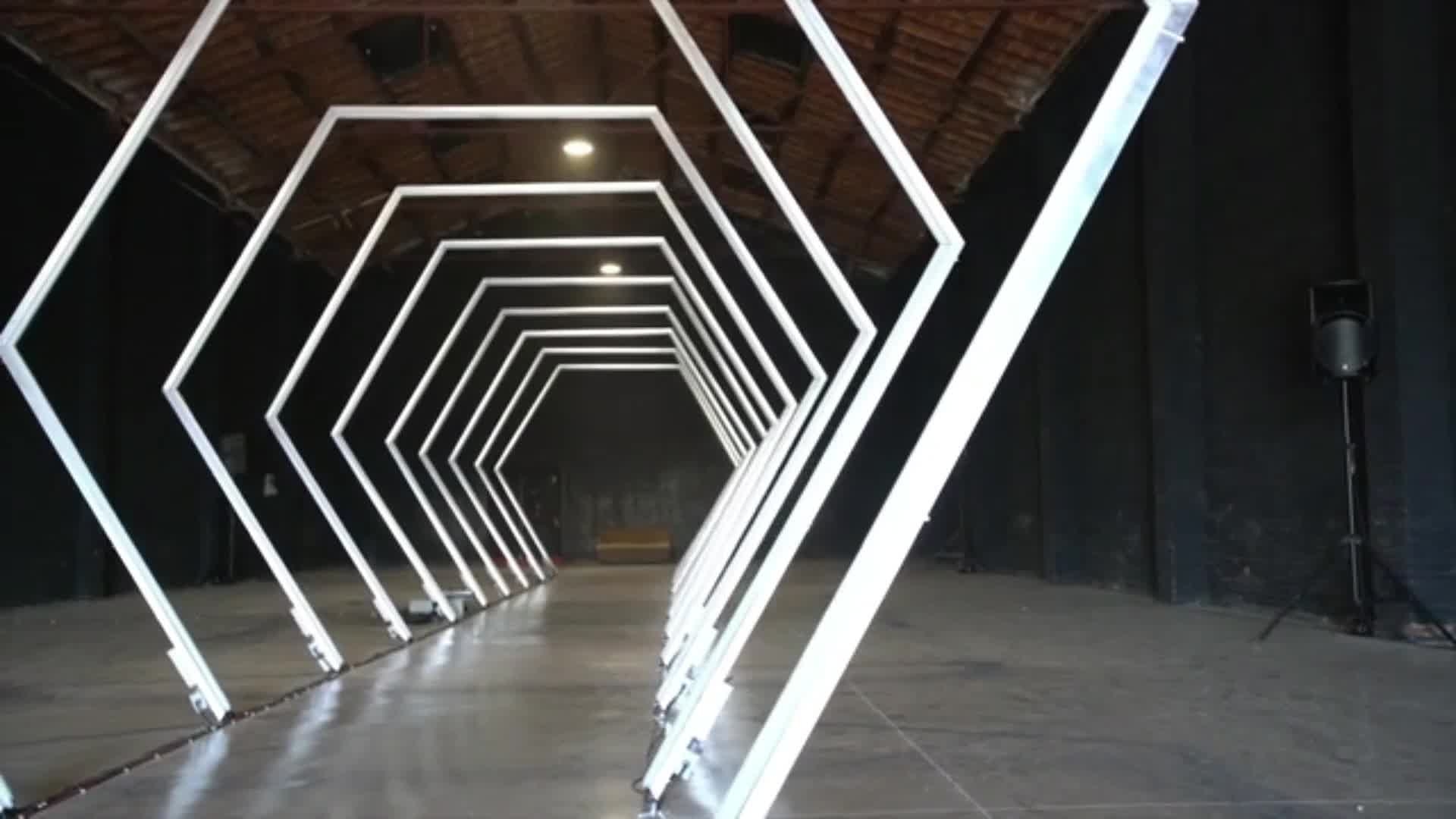The Hexagon LED Tunnel has responsive colour LED lights and supports video mapping! The metal structure is composed by 12 hexagonal arches