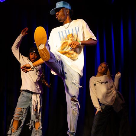 Past performances include The Bay Music Awards (Malta), Phat Skillz (Germany), Breakin' Convention (UK Tour), The IDO World Hip Hop Championships (Poland) and The HHI World Hip Hop Championships (Las Vegas, USA). In venues and theatres across the UK such as Olympia, The Royal Opera House, The Natural History Museum, Sadler's Wells, Hammersmith Apollo and Indigo2.