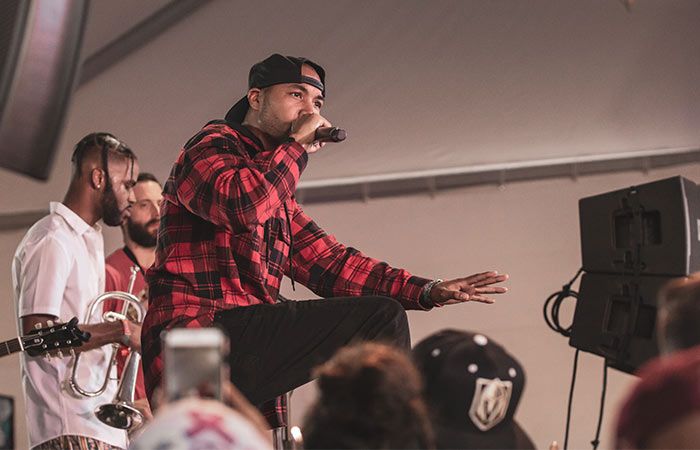 Completely scalable, our incredible hip hop artist can be accompanied by between 5 and 9 jazz musicians for a performance like no other