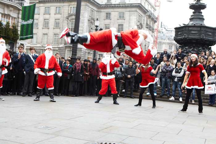 Hire our professional and dynamic dancers for your upcoming social gathering or special event, and bring your guests a fun abundance of Christmas cheer with our intricate dance show experience, featuring our talented professional dancers who will deliver a custom bespoke dance mob performance for your event. Bound to captivate your guests, our sensational and unforgettable dance group throw together an electric and dynamic dance act that will keep your guests invested and entertained from start to finish, as our raw talented dancers perform a variety of dance moves all while dressed as a group of Santa's.