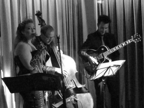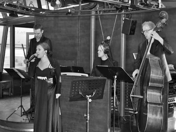The band give you the choice between an instrumental Jazz line up, ranging from a duo, up to quintet (Double bass – Saxophone / Guitar / Keyboard / drums / Vibraphone, Trumpet) to a vocal group line up with a stunning female vocalist.