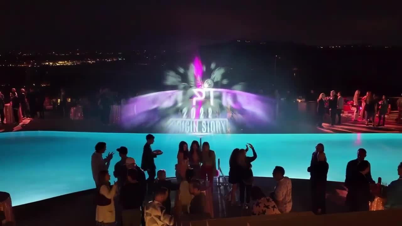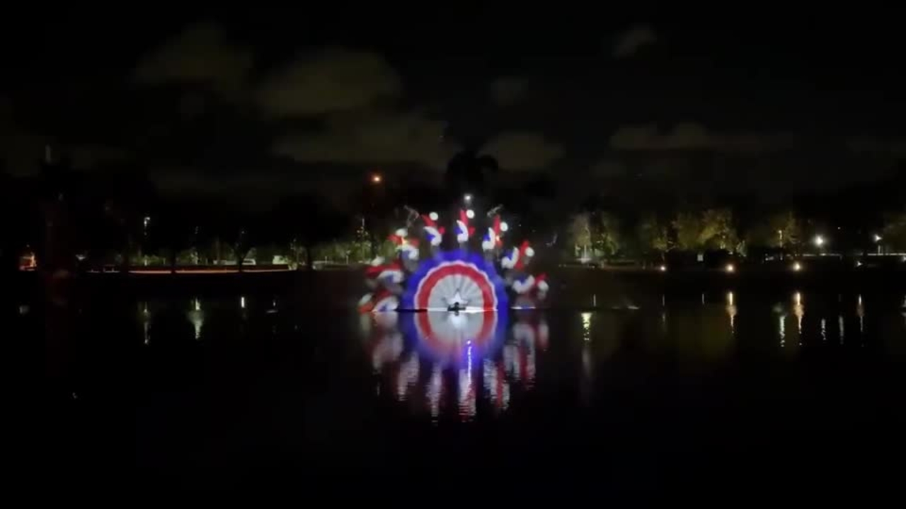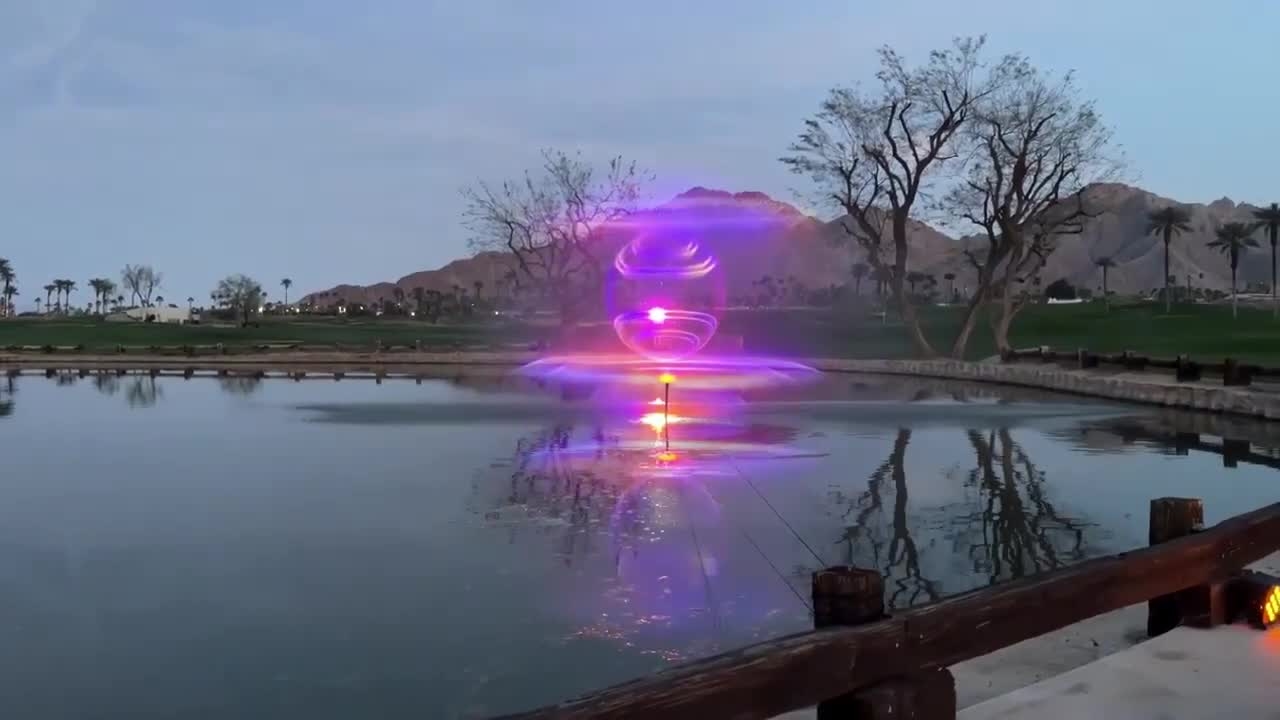 Suitable for swimming pools or small lakes, this artist can create custom water-based installations to create a centrepiece for your nighttime event