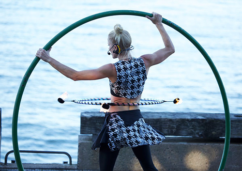 Our sensational hula hoop dancer has been performing for ten years, taking hula hoop performances to the next level with her thrilling and innovative range of acts which have dazzled audiences in 42 countries all over the world. Our hoop street show is the perfect choice to draw crowds at street fairs, festivals and outdoor events of all kinds, and her hugely entertaining and interactive act will give guests an unforgettable experience.