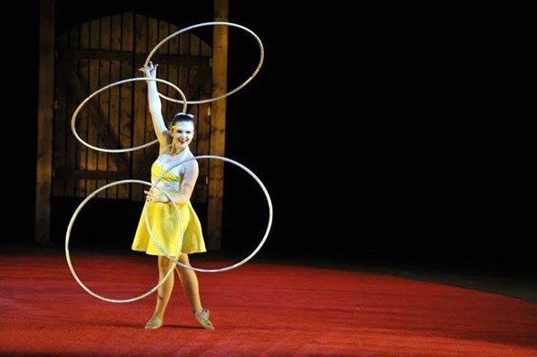 " Holding her own among all these professionals is 15-year-old … a brilliant hoop artist .. who twirls with an eloquence and virtuosity that summon a sense of wonder from another age. "
