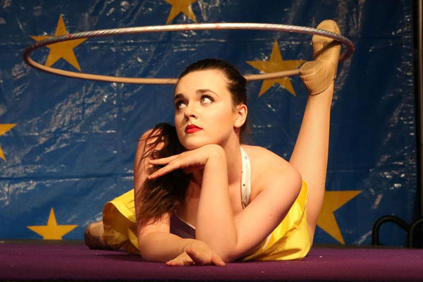 This is a dramatic and passionate hula hoop act performed in a classic style. Audiences will watch in amazement as she elegantly twirls single and multiple hoops around her arms, legs and body whilst dancing to the sophisticated sounds of French singer Ginette Reno. This elegant hoop act can be performed with a white or blue costume, and is perfect for corporate events.
