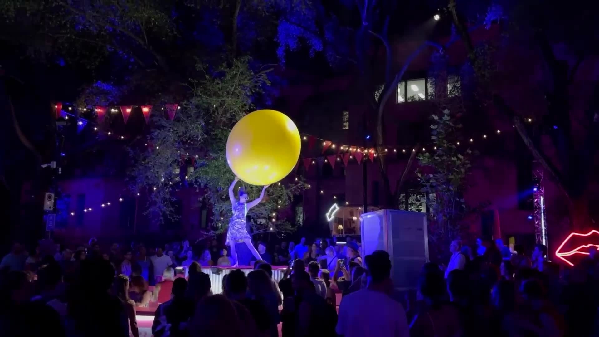 This unique human balloon act pops with flair, blending contortion and disco-fueled whacking into bold, high-energy performances