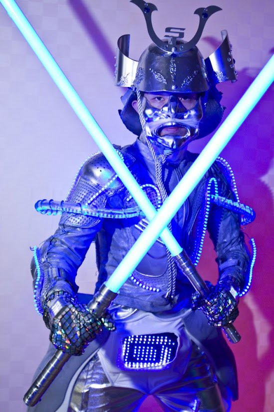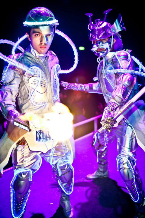 A paradoxical combination of ancient warrior design with technological elements, these unique and extraordinary figures will certainly grab attention at your function with their light up, highly detailed outfits and high energy performances.