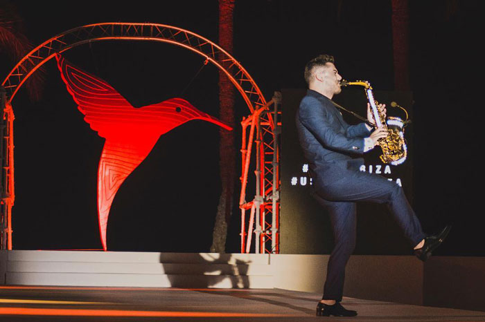 Our Ibiza Sax Player is a talented natural-born showman whether he’s performing at Ibiza’s beachfront resorts, world-famous nightclubs, festival main stages or luxury parties. His live shows are full of charisma, energy and enthusiasm with an unrivalled passion for delivering more than just live music. He has a few specialities under his sleeve like wedding sax packages, lively nightclub shows and even tailorable appearances for corporate clients.