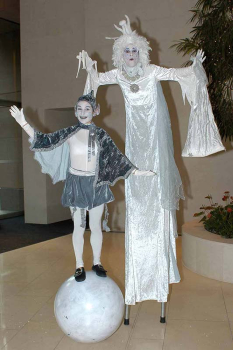 These beautiful white as snow characters are brilliant roaming performers who will keep your guests in high spirits all day with their inventive and interactive performances. This stilt walker and globe walking duo work perfectly together to entertain audiences and guests of all ages and their stunning costumes make an impressive sight that will take any festival, parade or party to the next level.