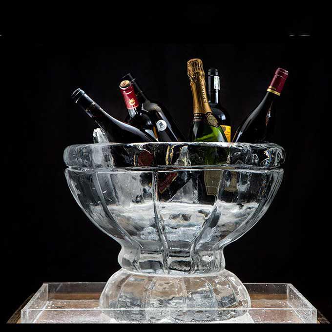 Our professional ice sculptor creates impressive ice sculptures in a range of sizes as well as ice bars and vodka luges on a variety of event themes