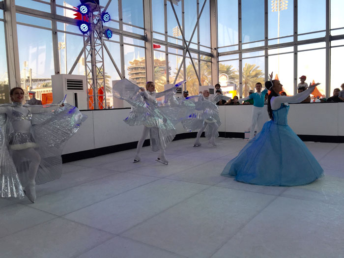 They can adapt the shape of their ice surface to be used as a fashion catwalk, ideal for shopping malls and fashion shows. They also perform at garden parties, car launches, theme parks, weddings and other various promotional events.