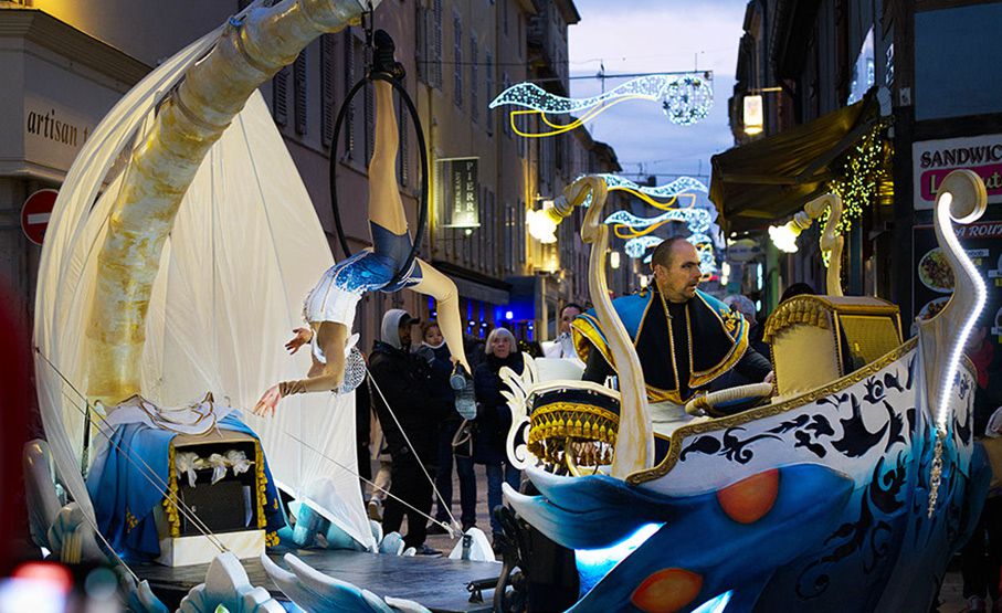 This light-up sea voyage themed street parade is based in the north-central France and travels throughout the country and wider Europe