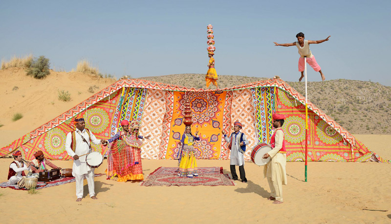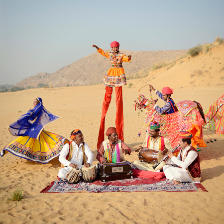 From Rajasthan, the home of the most elite of Indian street circus performers; this fascinating Indian circus troupe comprises of an incredible cast of dancers, illusionists, aerialists, acrobats, rope walkers, pole vaulters, fakir artists, stilt walkers and traditional puppeteers presenting a vibrant, fast-moving spectacle of intrigue, laughter and surprise