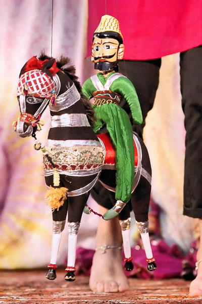 Trained by a marionette master in a Rajasthani village, this puppet master learned the skilful finger technique with which to control the puppet strings directly in the traditional way.