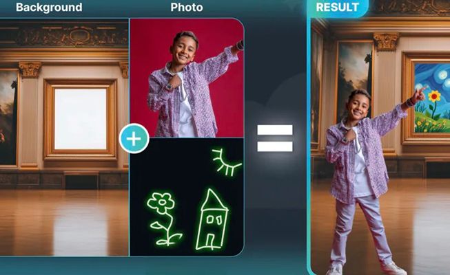Guests draw on a touchscreen and see their sketches reimagined into colourful artworks in graffiti, watercolour, clay or pixel-style effects