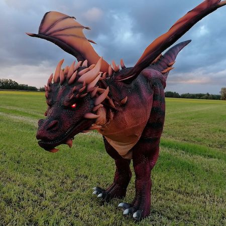 Roaring and breathing smoke, this dragon captivates guests, inviting them to step closer and interact with the surprisingly friendly creature