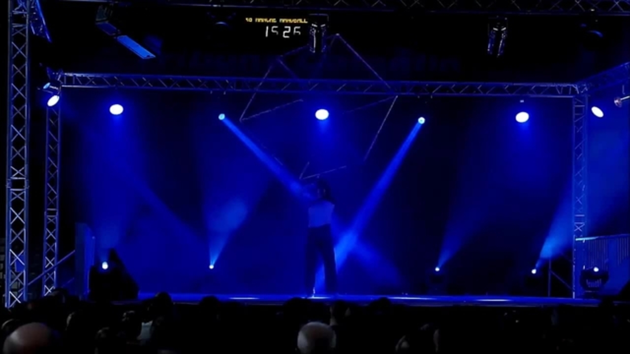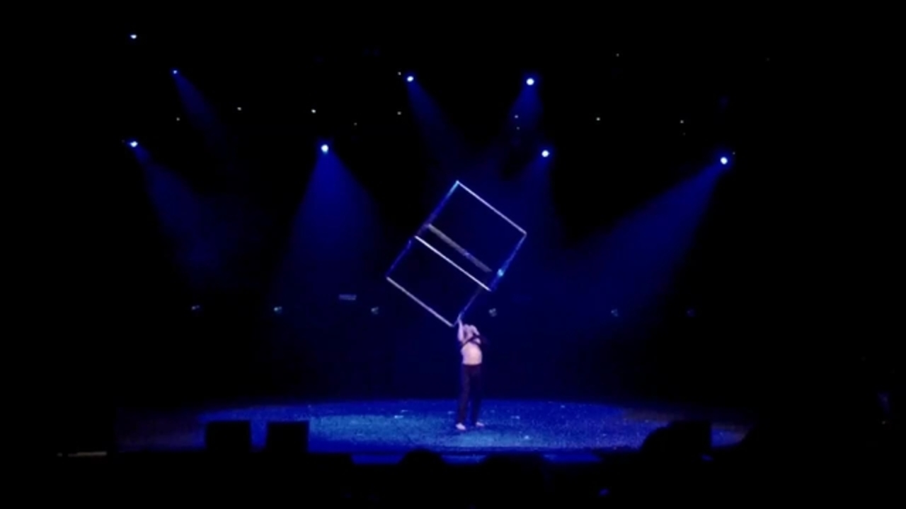 On return in France three years later, Sergio had created an impressive one-man show combining a mix of circus acts, songs and humour, always with an interaction with the audience. The International Cube Act involves Sergio juggling an impressively large cube in sync with music and lighting; the result is a spectacular show that is both a dance and a strength show.