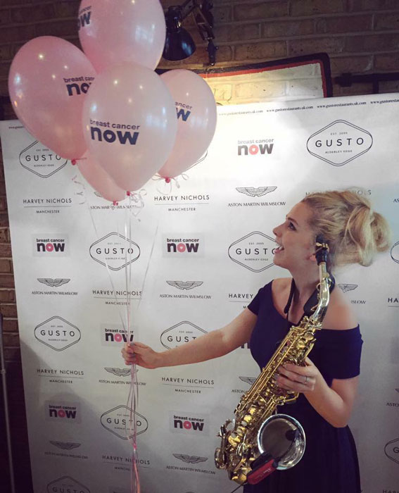 Previous clients of the female saxophonist include Hello Magazine, Breast Cancer Awareness, Hilton Hotels, Four Seasons Hotels, Radisson Hotels, Crimson Hotels, political party conferences and MacDonald Hotel and Spas.