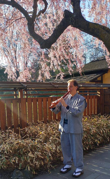 The New York bamboo flute player is one of the very few non-Japanese people to receive the high-level Dai-Shi-Han (Grand Master) certificate. Starting off as a classical flute player, with a masters degree in Western flute and musicology from Queens College, he travelled to Japan to study the Japanese bamboo flute with grand masters and became one himself. He is now one of only around 100 shakuhachi music professionals in the world.