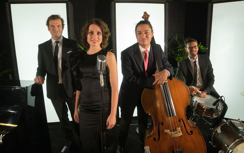 With a vivacious stage presence, our 1920s theme quartet is fronted by a pitch-perfect female vocalist of Italian decent. Having discovered her love for jazz and vocal improvisation at an early age, she is an experienced songwriter and performer. Guaranteed to hit the right note and create a fantastic party atmosphere, our talented female jazz singer is backed by professional vintage style musicians who’ll swing your guests onto the dance floor long into the night.