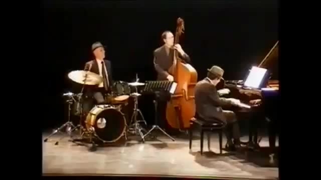 1930s style jazz trio consisting of a pianist, bassist & drummer