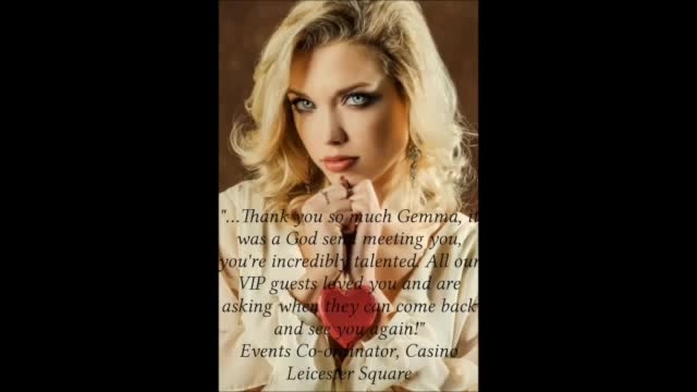 " ...Thank you so much Gemma, it was a God send meeting you, you're incredibly talented. All our VIP guests loved you (as you know) and are asking when they can come back and see you again "