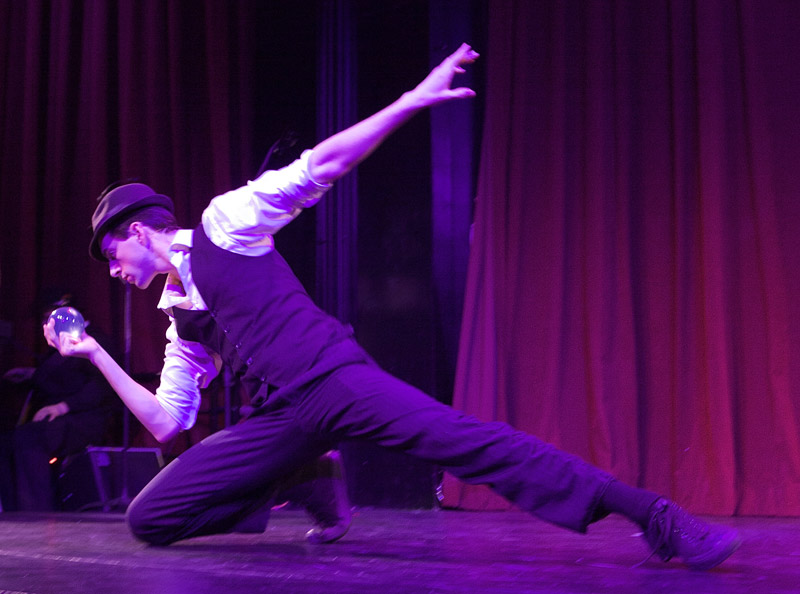 Characterised by his unique aesthetic, Benjamin’s contact juggling combines his personal style of dance and object manipulation. Also skilled at club work and knives, he sets the stage with a show guaranteed to amaze. Completely at home in an upbeat circus act, Ben’s performances can just as well be quietly introspective and moving, depending on event requirements.