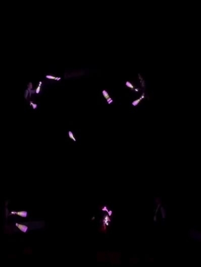 In addition to their unique aerial juggling act, they dazzle with multiple club tricks, glow-in-the-dark juggling and much more