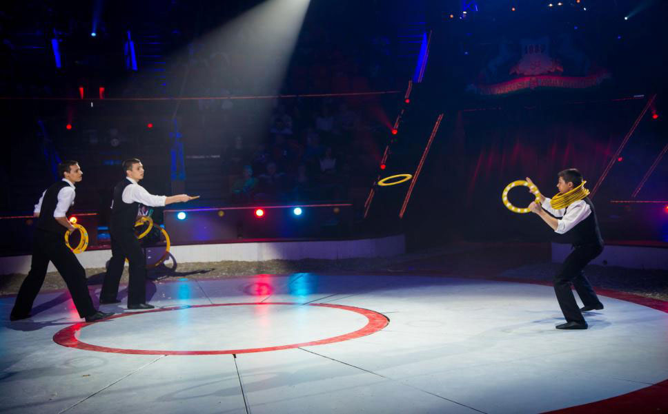 Audiences will watch in amazement as the trio perform dynamic acts, including ducking, diving and juggling an array of props from clubs through to throwing hoops over each other’s heads!