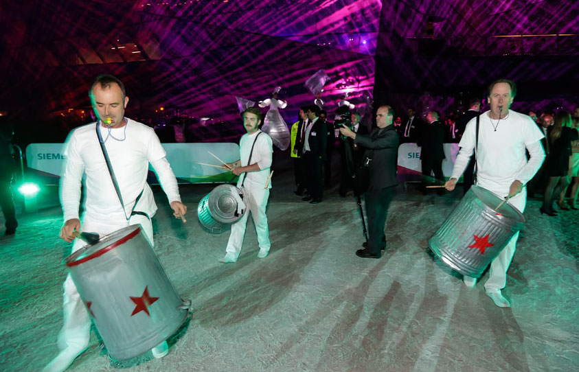 The group uses a mixture of Junk and Drum instruments and have various costume options, including their latest addition, Fire Drummers - 15 minutes of Flame! This performance incorporates working with angle grinders and dancers to create that extra spark. Fantastic for themed events the drummers can perform in a variety of costumes. For example they can perform as vintage circus or Brazilian drummers especially for the Olympics!
