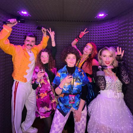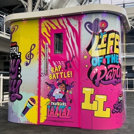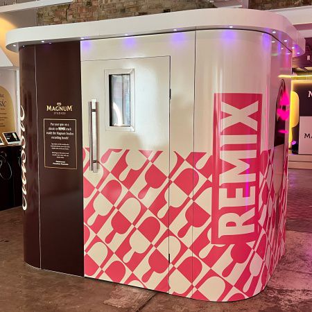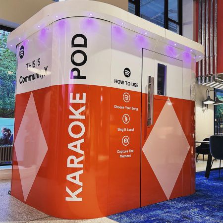 The karaoke booth can be fully branded to your needs, as seen previously for clients like Spotify, Sky, Magnum, Nestle, Virgin, O2 and Jet2 Holidays