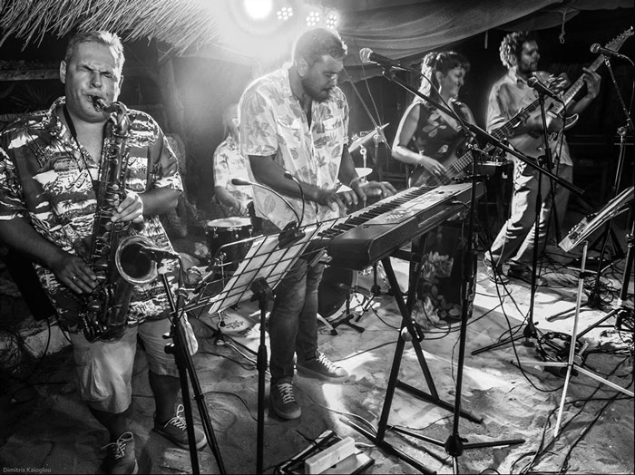 The standard line-up of the exciting Kefalonia Party Band forms an energetic covers band that has a repertoire bursting with classics and well-known songs. You can expect anything from Daft Punk, Prince and Pharell Williams to Stevie Wonder, Otis Redding and The Jackson Five. This talented greek cover band effortlessly transitions between funk, pop, soul, jazz, rock, Motown and traditional Greek music.