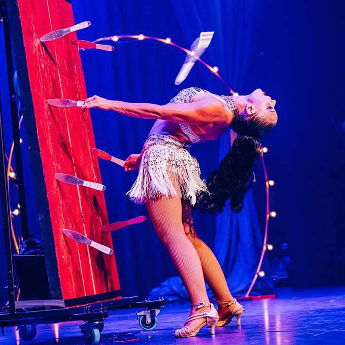Our talented duo will have guests on the edge of their seats with this nailbiting knife-throwing and crossbow act featuring axes, wheels and more
