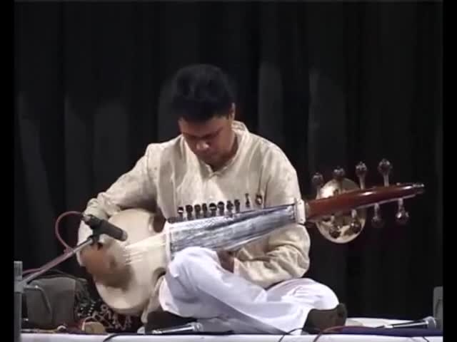 An authentic Indian musician committed to playing the sarod, a 25 strings traditional Indian instrument from the lute family