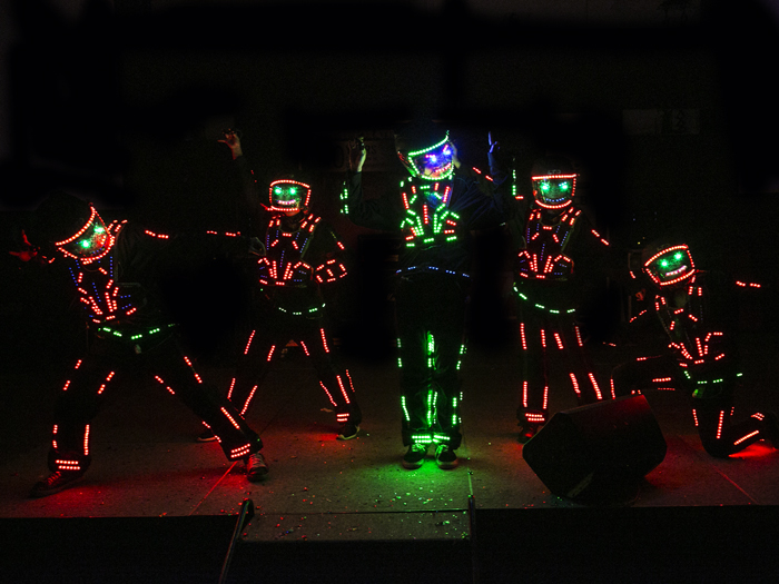 These awesome looking LED Robot Dancers provide a high-tech performance with energetic dance routines and upbeat backing tracks. The exciting LED dance show is a very carefully choreographed and programmed performance with precise stage movements and expertly synchronised changing LED light sequences. The LED Robot Dancers’ lights can be customised to match a brand or product colour scheme and they will create an LED dance show especially for the event.