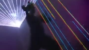 Bathing the stage in the glow from columns of light, our dancing laser artist delivers a stunning spectacle as he bends, slices and fans laser beams with his hands.