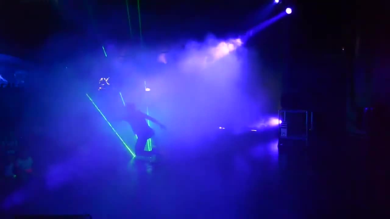 This laser act brings a futuristic atmosphere to venues, with a black jumpsuit costume and lasers synchronized perfectly to the rhythm of the music