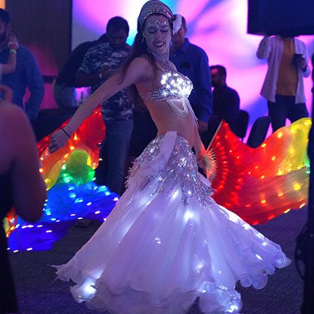 Whether performing impressive choreographed sets or up close ambient routines, our LED Belly Dancer is a striking addition to any event