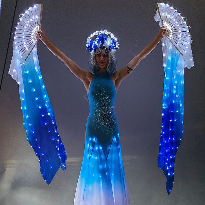 Stunning blue LED costumes create a magical, icy glow that captivates guests and lights up any winter event
