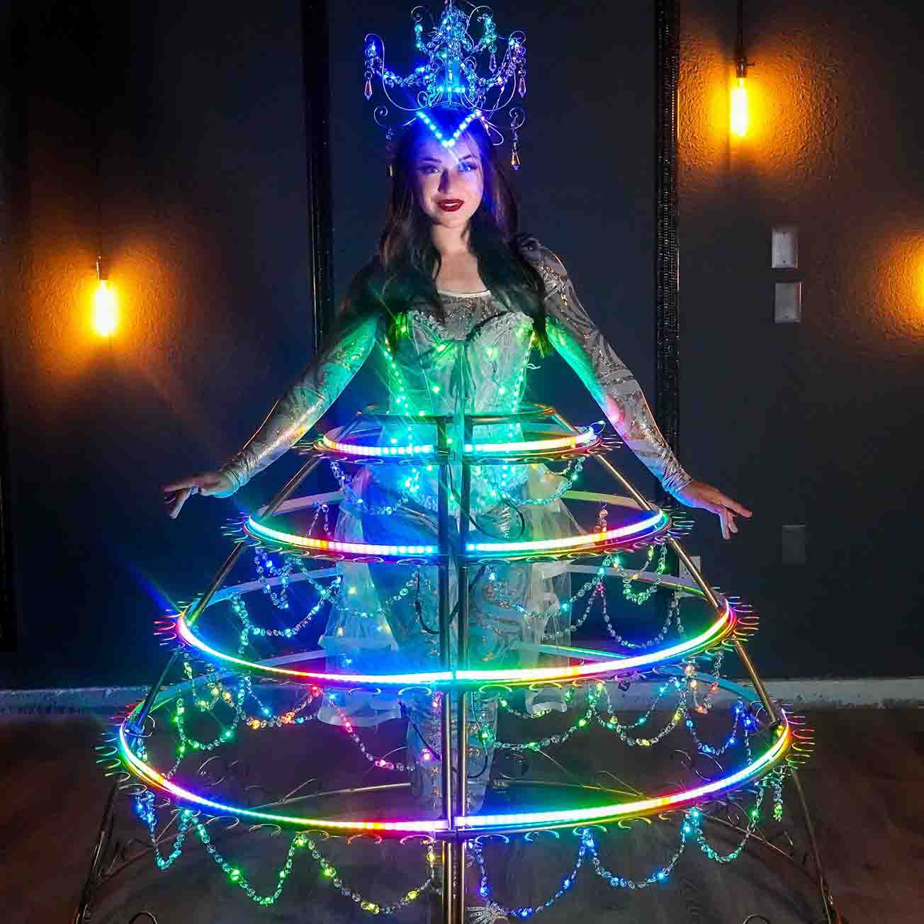 Our strolling LED dresses roam about venues, interacting with guests and ensuring their drinks are kept refilled
