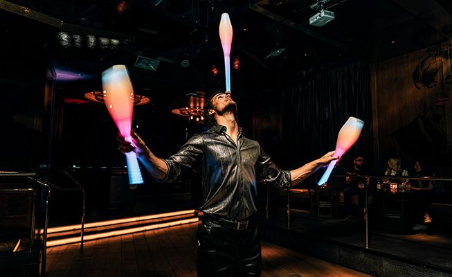This LED juggler has entertained top executives, industry leaders, and celebrities for major brands such as Google, Pepsi, Dell, and T-Mobile