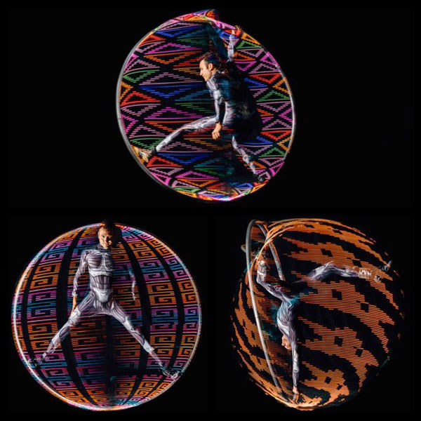 With graphics that can be programmed to display precisely in time with the music, this LED cyr wheel act is high-energy and high-impact and a sure fire way to add wow factor to any event. Book our LED Cyr Wheel today!