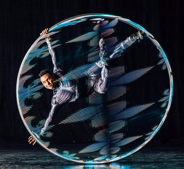 - Our LED cyr wheel act can perform with additional cyr wheel performers if required.