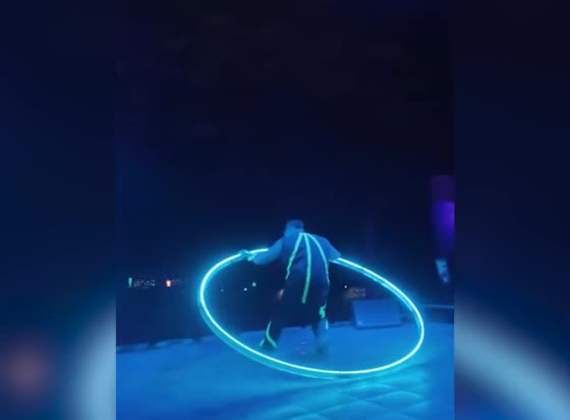 Boasting the latest cutting edge technology which enables clients the ability to customize the performance with the inclusion of text, company logos and specific colors and patterns, our unique cyr wheel act is perfect to book for corporate events, product launches and conferences. The multitude of LED lights within the wheel light up a dark space creating an incredible visual spectacle of color and light! Book our LED Cyr Wheel act for an impactful LED stage performance to announce the start of your corporate event, or the end of a successful sales event, as our LED act creates illuminations complete with your logo.