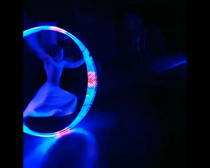 The Cyr wheel can be programmed to display colours, patterns and logos - great for matching a brand theme or as entertainment for product launch