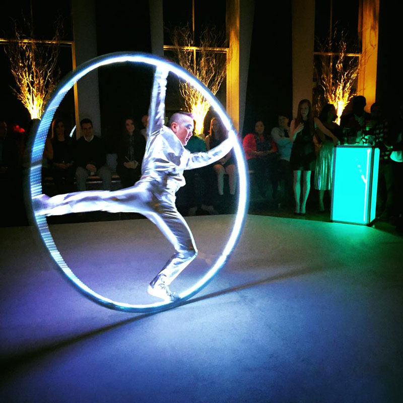 The cyr wheel performers can customise their costumes to suit your event theme