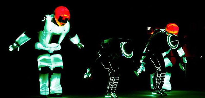 Under dim light conditions or full darkness, our glow-in-the-dark dance group executes dynamic choreographies with the latest in LED technology to deliver an awe-inspiring and captivating experience! Wearing incredible robot costumes with different coloured lights, this extraordinary dance troupe provides an unforgettable spectacle full of light and energy.