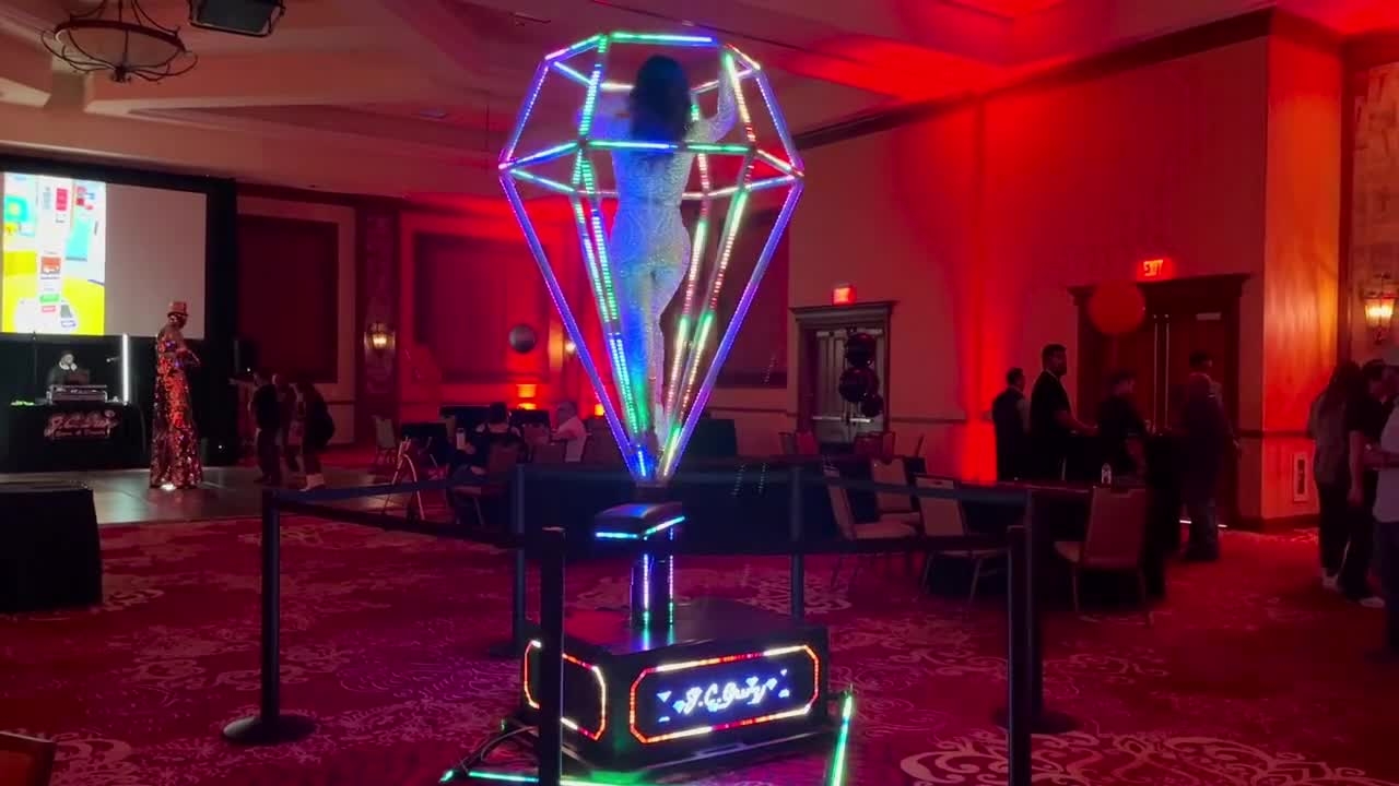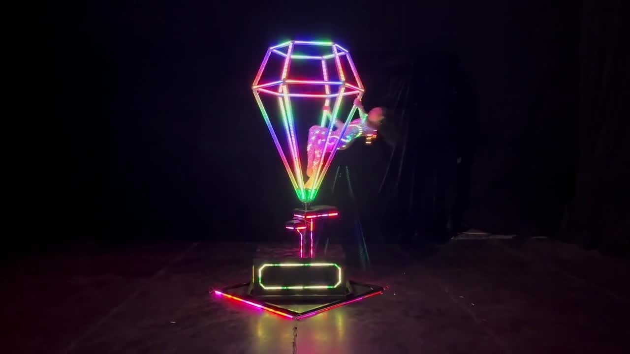 Create a breathtaking spectacle with a performer swooping inside a glowing LED diamond, captivating audiences at any upscale event