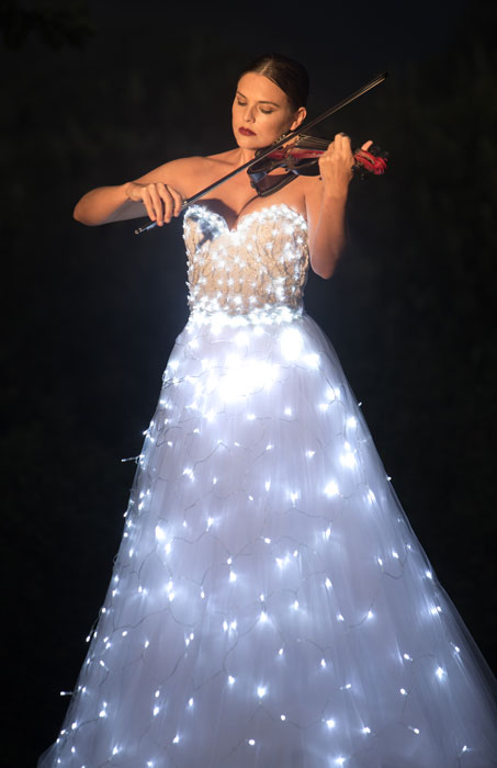 Our beautiful LED Dress Live Female Musician is based in Cape Town and available for events all over the world.